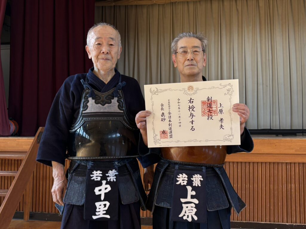 当剣友会会長の上原先生が七段に昇段致しました。おめでとうございます。